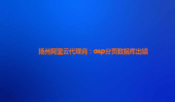 揚(yáng)州阿里云代理商:解決ASP分頁數(shù)據(jù)庫出錯(cuò)問題 1.阿里云的強(qiáng)大數(shù)據(jù)庫支持 在使用ASP進(jìn)行開發(fā)時(shí),分頁查詢是常見的操作。然而,數(shù)據(jù)庫分頁在處理大量數(shù)據(jù)時(shí),容易因?yàn)橘Y源消耗過大而導(dǎo)致數(shù)據(jù)庫出錯(cuò)。作為揚(yáng)州阿