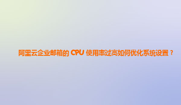 阿里云企業(yè)郵箱的CPU使用率過高如何優(yōu)化系統(tǒng)設(shè)置? 隨著企業(yè)對數(shù)字化轉(zhuǎn)型的推動(dòng),越來越多的公司選擇使用阿里云企業(yè)郵箱這一工具來提升工作效率和溝通便捷性。然而,在實(shí)際使用過程中,一些企業(yè)可能會(huì)遇到阿里