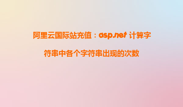 阿里云國際站充值:ASP.NET計(jì)算字符串中各個(gè)字符串出現(xiàn)的次數(shù) 隨著互聯(lián)網(wǎng)的不斷發(fā)展,網(wǎng)站和應(yīng)用程序的復(fù)雜度不斷增加,開發(fā)者們需要越來越多的工具和技術(shù)來提高工作效率。ASP.NET作為微軟的一款開發(fā)框架,在Web開