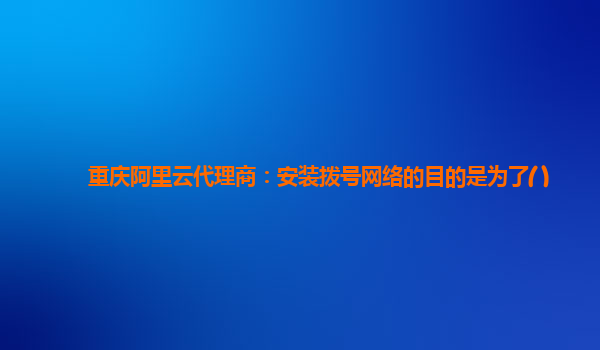 重慶阿里云代理商:安裝撥號網(wǎng)絡(luò)的目的 隨著信息化時代的到來,越來越多的企業(yè)和個人開始依賴網(wǎng)絡(luò)來進行日常工作和生活。而為了更好地滿足用戶需求,阿里云憑借其強大的技術(shù)實力與資源優(yōu)勢,在重慶地區(qū)取得了顯著的