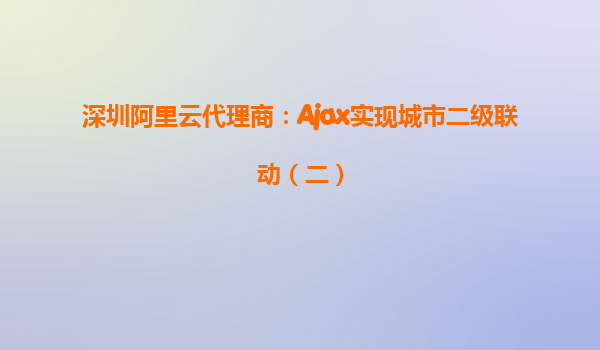 深圳阿里云代理商:Ajax實現(xiàn)城市二級聯(lián)動(二) 隨著互聯(lián)網(wǎng)技術的不斷發(fā)展,前端技術也在快速進步,AJAX(AsynchronousJavaScriptandXML)作為一種實現(xiàn)無刷新網(wǎng)頁更新的技術,已被廣泛應用于各種網(wǎng)頁開發(fā)中。城