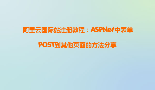 用戶需要關(guān)于阿里云國際站注冊(cè)教程以及ASPNet中表單POST到其他頁面的方法分享的文章。 阿里云國際站注冊(cè)教程及ASPNet中表單POST到其他頁面的方法分享 阿里云國際站注冊(cè)教程 阿里云國際站提供了便捷的