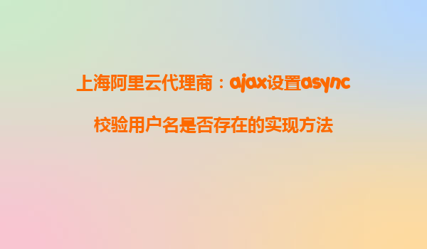 使用上海阿里云代理商實(shí)現(xiàn)AJAX異步校驗(yàn)用戶名是否存在 引言 在現(xiàn)代Web開發(fā)中,用戶體驗(yàn)的優(yōu)化是一個(gè)重要的方面。其中,表單驗(yàn)證作為用戶輸入的重要環(huán)節(jié),需要即時(shí)反饋以提升用戶體驗(yàn)。本文將探討如何利用AJA