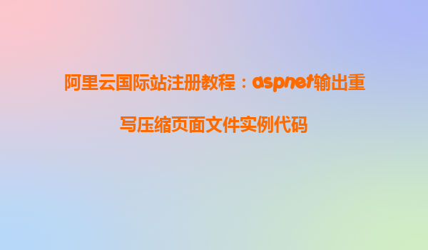 阿里云國(guó)際站注冊(cè)教程:ASP.NET輸出重寫(xiě)壓縮頁(yè)面文件實(shí)例代碼 隨著互聯(lián)網(wǎng)技術(shù)的快速發(fā)展,云計(jì)算已經(jīng)成為了現(xiàn)代企業(yè)建設(shè)的必備基礎(chǔ)設(shè)施之一。阿里云作為國(guó)內(nèi)領(lǐng)先的云計(jì)算平臺(tái),憑借其強(qiáng)大的技術(shù)支持和穩(wěn)定的服務(wù),