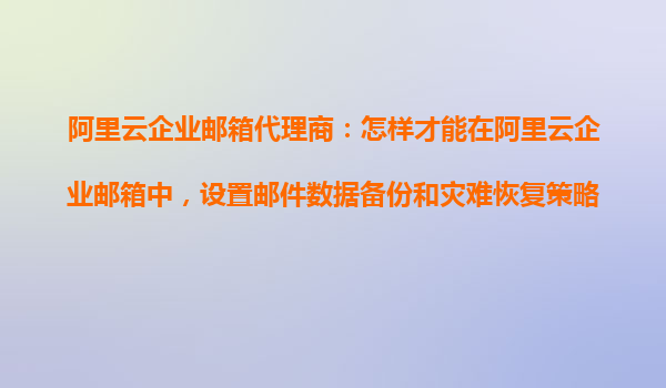 阿里云企業(yè)郵箱代理商:如何在阿里云企業(yè)郵箱中設(shè)置郵件數(shù)據(jù)備份和災(zāi)難恢復(fù)策略 在當(dāng)今數(shù)字化辦公環(huán)境中,企業(yè)郵件系統(tǒng)作為核心通信工具,其數(shù)據(jù)安全性和業(yè)務(wù)連續(xù)性至關(guān)重要。阿里云企業(yè)郵箱憑借其強(qiáng)大的