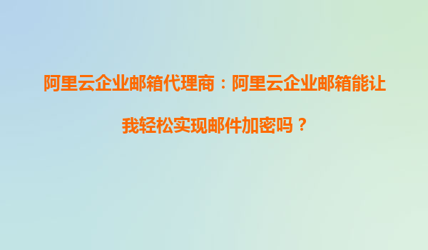阿里云企業(yè)郵箱代理商:阿里云企業(yè)郵箱能讓我輕松實現(xiàn)郵件加密嗎?引言隨著企業(yè)信息化的快速發(fā)展,數(shù)據(jù)安全成為企業(yè)管理的重中之重。郵件作為企業(yè)日常溝通的重要工具,其安全性尤為關(guān)鍵。許多企業(yè)選