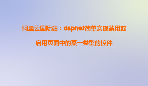 阿里云國際站:ASP.NET簡單實現(xiàn)禁用或啟用頁面中的某一類型的控件 在開發(fā)基于ASP.NET的Web應用時,可能會遇到需要根據特定條件禁用或啟用頁面中某一類控件的情況。通過禁用控件,可以防止用戶進行不必要的操作