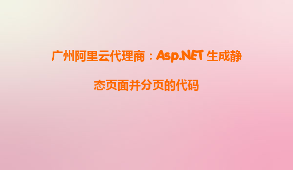 廣州阿里云代理商:ASP.NET生成靜態(tài)頁面并分頁的代碼 一、引言 在互聯(lián)網(wǎng)高速發(fā)展的今天,網(wǎng)站對于加載速度和訪問流暢性的要求越來越高。靜態(tài)頁面以其快速加載、低服務器消耗、安全性高等優(yōu)點,成