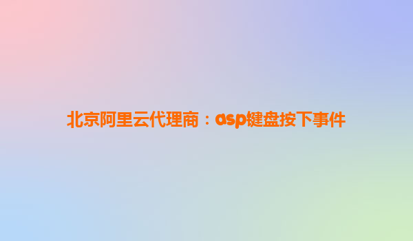 ASP鍵盤按下事件與北京阿里云代理商的完美結(jié)合 引言:ASP鍵盤事件的應用場景 在Web開發(fā)中,ASP(ActiveServerPages)技術(shù)常被用于構(gòu)建動態(tài)交互式網(wǎng)頁。鍵盤事