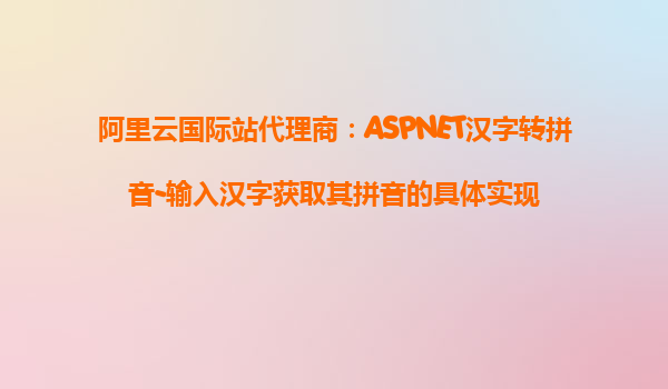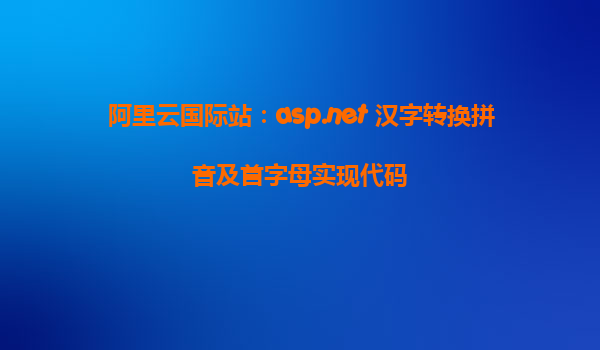 阿里云國際站:ASP.NET漢字轉(zhuǎn)換拼音及首字母實現(xiàn)代碼 在當今信息化時代,隨著互聯(lián)網(wǎng)的飛速發(fā)展,開發(fā)人員常常需要處理各種語言文字的轉(zhuǎn)換和編碼問題。對于中國用戶而言,漢字的拼音轉(zhuǎn)換是一個常見且重要的需求。