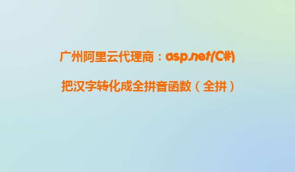 廣州阿里云代理商:基于ASP.NET(C#)的漢字轉(zhuǎn)全拼音函數(shù)(全拼)詳解 在信息化高速發(fā)展的今天,互聯(lián)網(wǎng)企業(yè)在日常的數(shù)據(jù)處理與管理中常常會遇到中文數(shù)據(jù)的轉(zhuǎn)碼、檢索優(yōu)化等需求。尤其是對于以客戶為中心