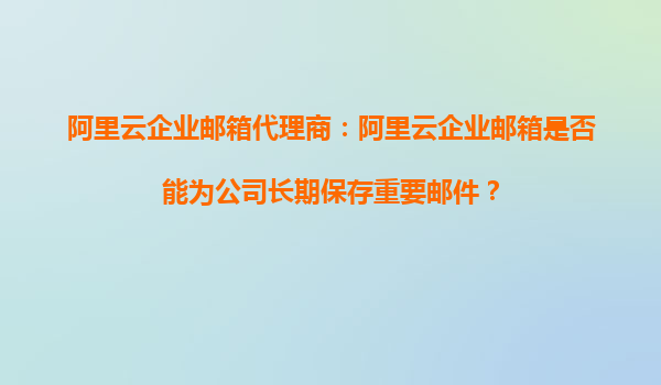 阿里云企業(yè)郵箱代理商:阿里云企業(yè)郵箱是否能為公司長期保存重要郵件? 在當(dāng)今數(shù)字化時(shí)代,企業(yè)郵箱不僅是溝通的工具,更是存儲(chǔ)重要業(yè)務(wù)信息的關(guān)鍵載體。對(duì)于企業(yè)來說,能否長期、安全地保存郵件數(shù)據(jù)