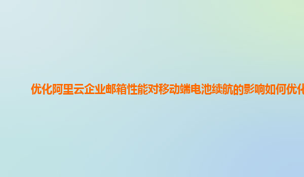 優(yōu)化阿里云企業(yè)郵箱性能對移動端電池續(xù)航的影響如何優(yōu)化? 在現(xiàn)代社會,電子郵件已成為企業(yè)溝通的重要工具,而阿里云企業(yè)郵箱憑借其強大的功能和靈活性,受到了眾多企業(yè)的青睞。然而,隨著移動互聯(lián)網(wǎng)的普及