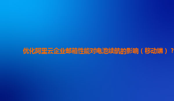 優(yōu)化阿里云企業(yè)郵箱性能對電池續(xù)航的影響(移動端) 隨著移動設備的普及,移動端電池續(xù)航已成為用戶體驗的重要影響因素。在優(yōu)化阿里云企業(yè)郵箱的性能時,特別是考慮到移動設備的特殊性,需要注重多個方面的